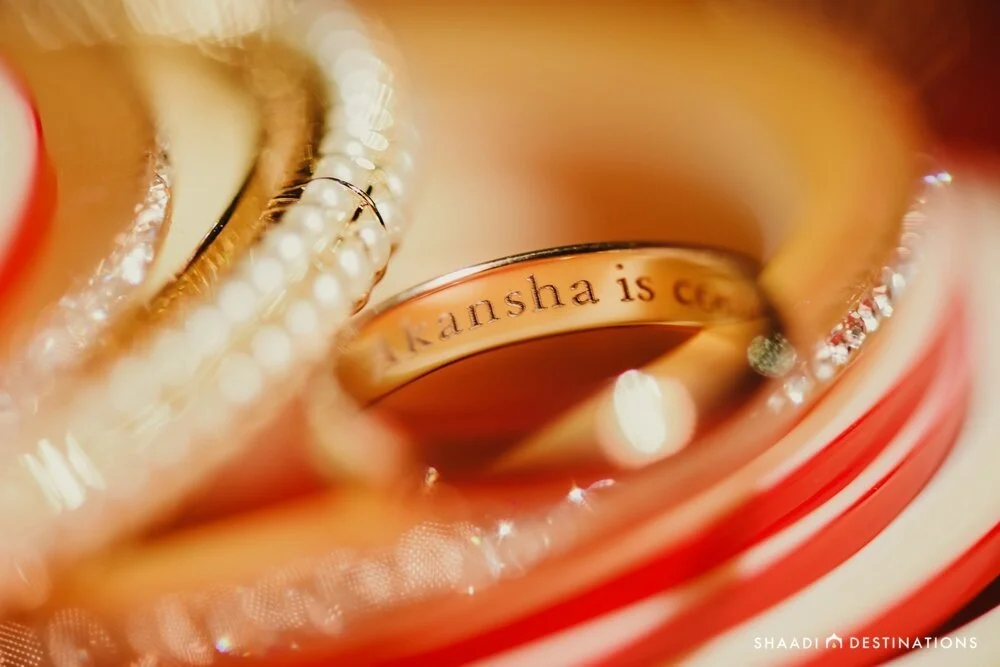 The ring says “Akansha is cool”. There isn’t much of a story to it other than the fact that Praveer was ordering the ring off Blue Nile on a workday evening and said “wouldn’t it be funny if I got “Akansha is cool” engraved on the ring?” We decided yes and the rest is history.
