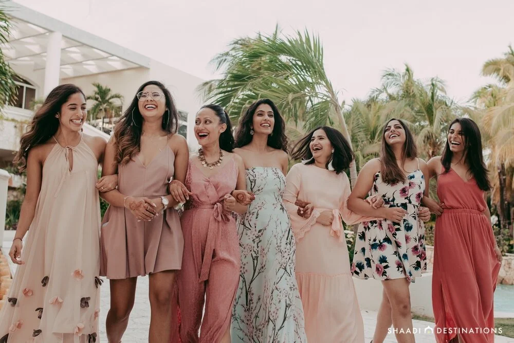 Sejal and her bridesmaids having a wonderful time in paradise! After their site inspection, they knew exactly where to recommend their guests to eat and drink all weekend! Courtesy of Sea & Love Wedding Films