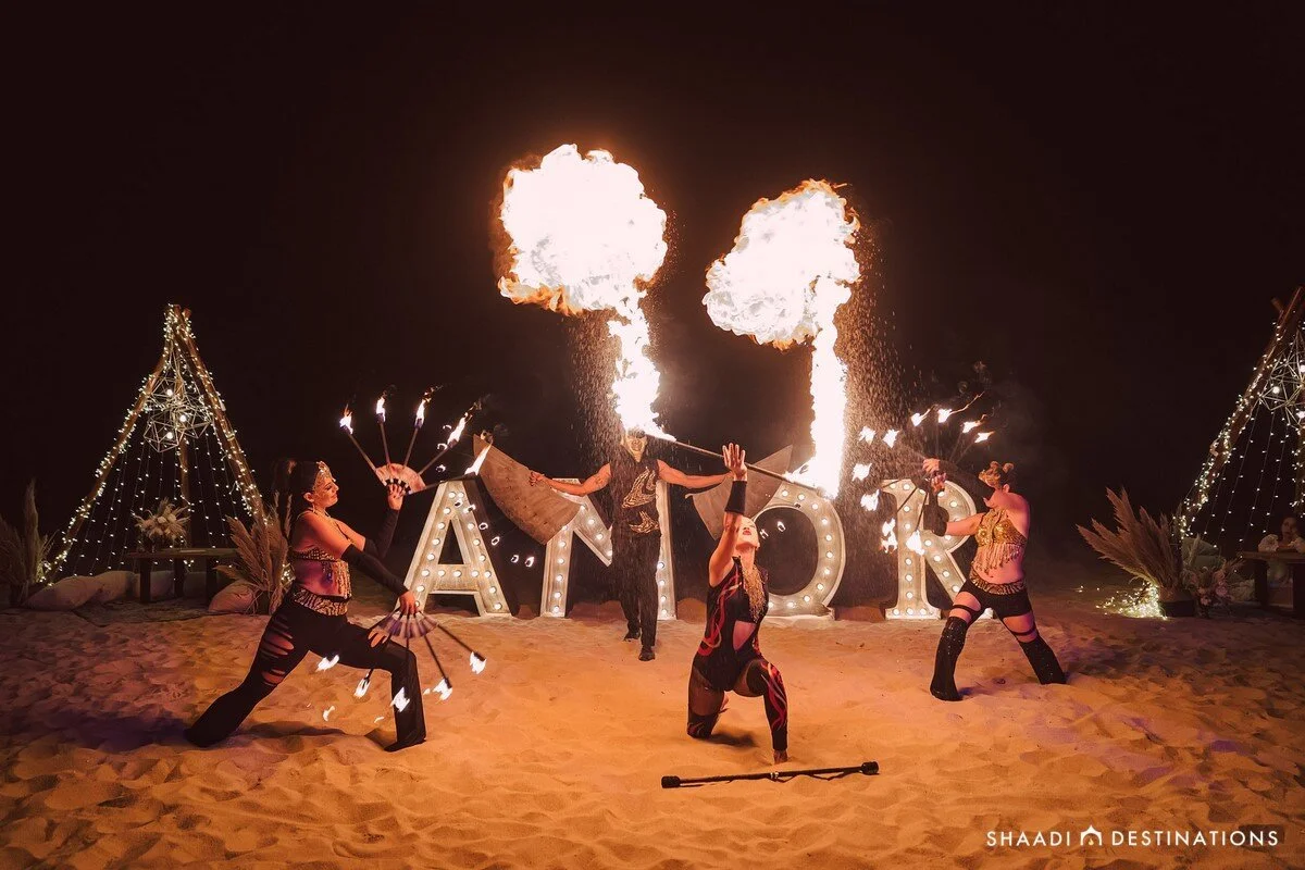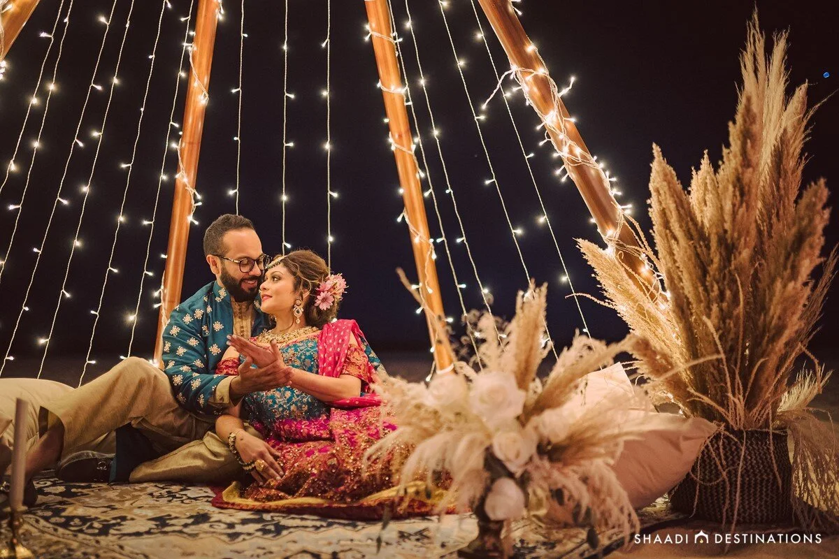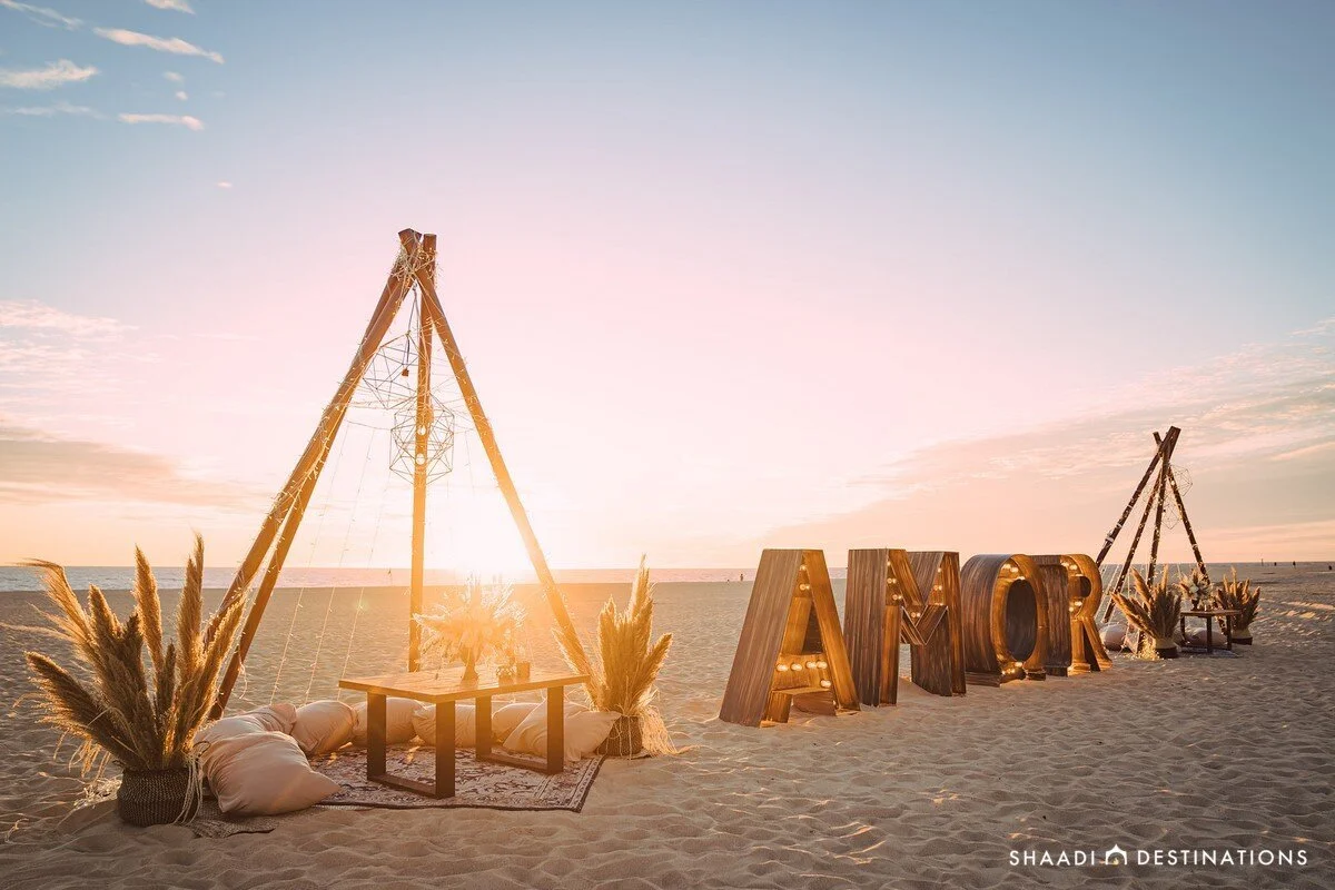 One of our favorite events was our Moroccan themed Mehndi night on the beach! I think this came out way better than what we even envisioned. I had seen some photos on Instagram with some beach parties with the teepees and similar décor…. I remember our planner saying, “I don’t like to do the same thing twice, let me handle it”... so I did and it was everything and more!