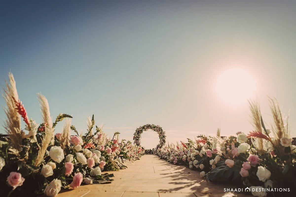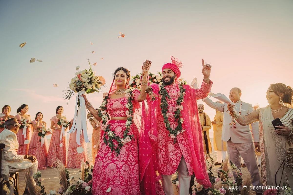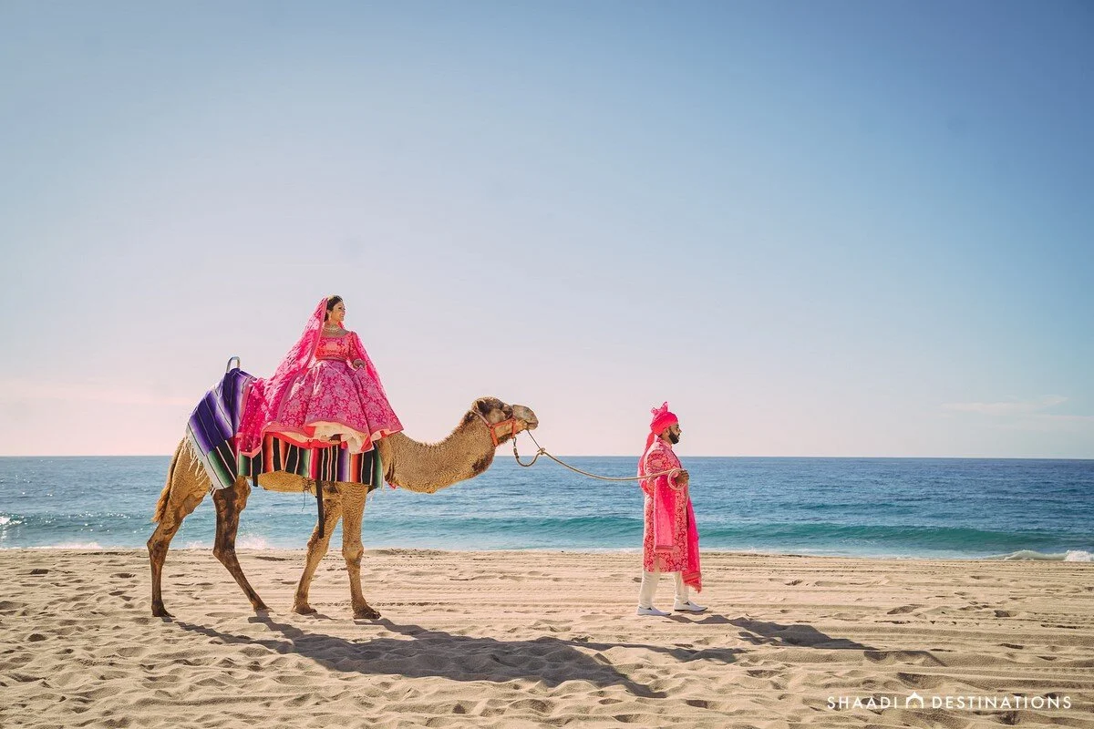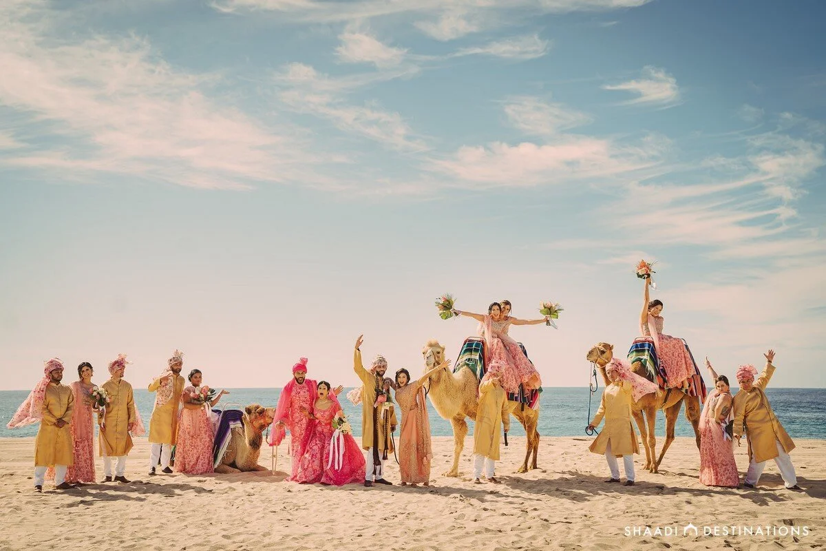 Lira and Omesh’s love story had us hooked! Starting off with him asking her if she could use a hand, only to be handed 5 years of long distance as she jetsetted across the US to complete her residency, their story took full flight with their fabulous destination wedding in Los Cabos. With their team of All Star vendors, they packed their bags and hosted 290 guests in Baja California Sur at the brand new Hard Rock Hotel Los Cabos. From photoshoots at the dramatic Cape to moments with their bridesmaids and groomsmen in the desert with camels to a holi party on the beach to their stunning floral-adorned wedding at Nobu Hotel Los Cabos, this one is definitely worth the read!