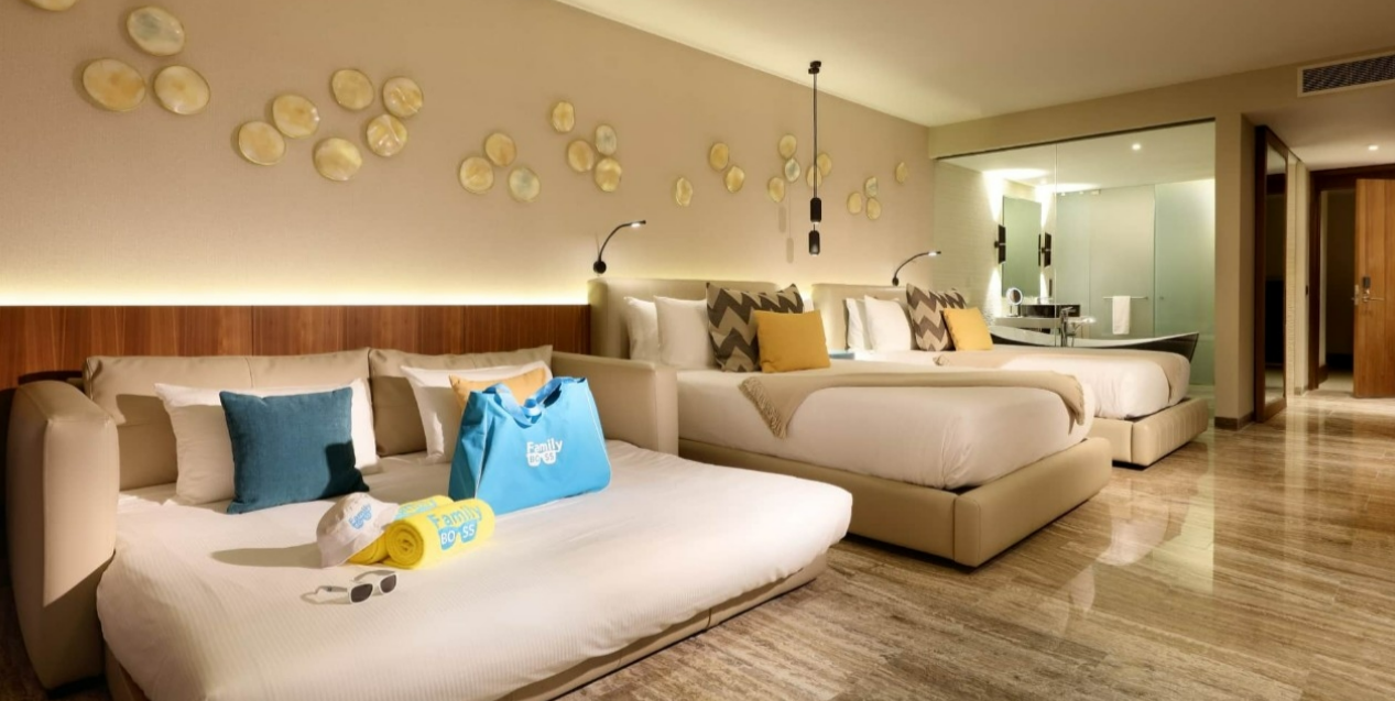 At the heart of TRS Coral and Grand Palladium Select Costa Mujeres Resort & Spa is its village zone, a bustling hub with à la carte restaurants and outstanding services. The hotel’s beautifully furnished rooms are kitted with memory foam mattresses, whirlpool bathtubs, and sofa-beds, ensuring guests remain relaxed and rejuvenated throughout their stay.