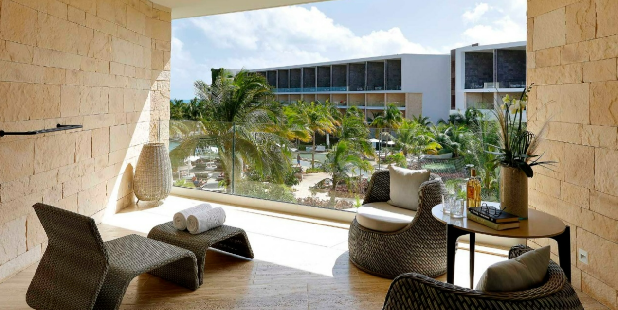 Stunning room with warm, modern interior design and a fabulous terrace overlooking manicured tropical gardens. Treat yourself to an unforgettable stay in this spacious junior suite with a luxe marble rainfall shower and a standalone hydromassage bathtub.