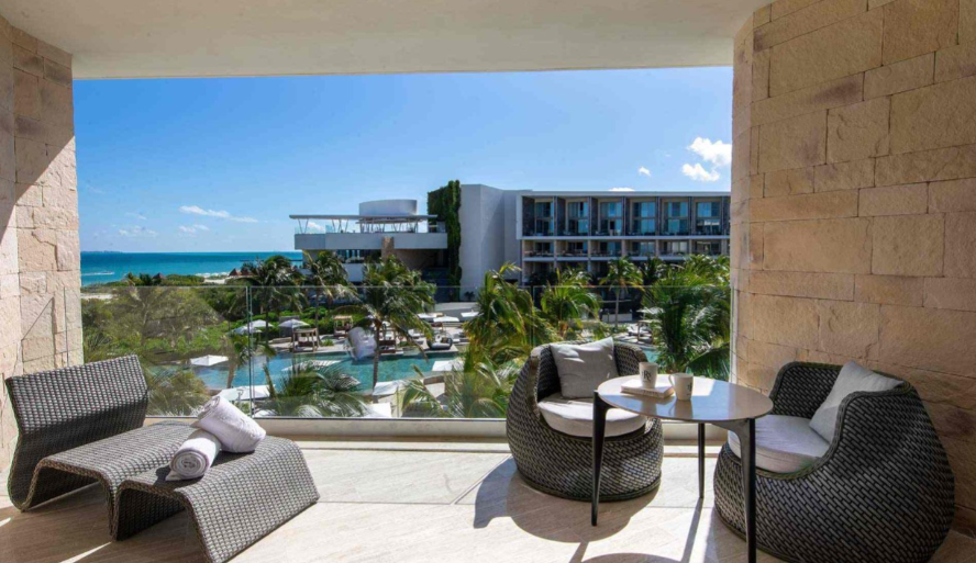 Spacious, modern room with incredible ocean views from the tranquil terrace. Unwind in the room’s elegant marble rainfall shower or the unique standalone hydromassage bath. Out on the furnished terrace, you can sit back, relax, and take in the incredible views of the Caribbean for a getaway you’ll never forget.