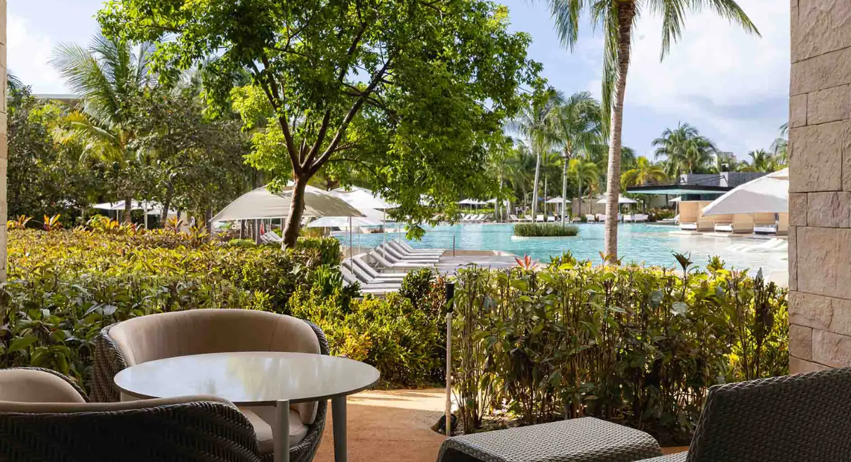 Stunning room with warm, modern interior design and a fabulous terrace overlooking manicured tropical gardens. Treat yourself to an unforgettable stay in this spacious junior suite with a luxe marble rainfall shower and a standalone hydromassage bathtub.