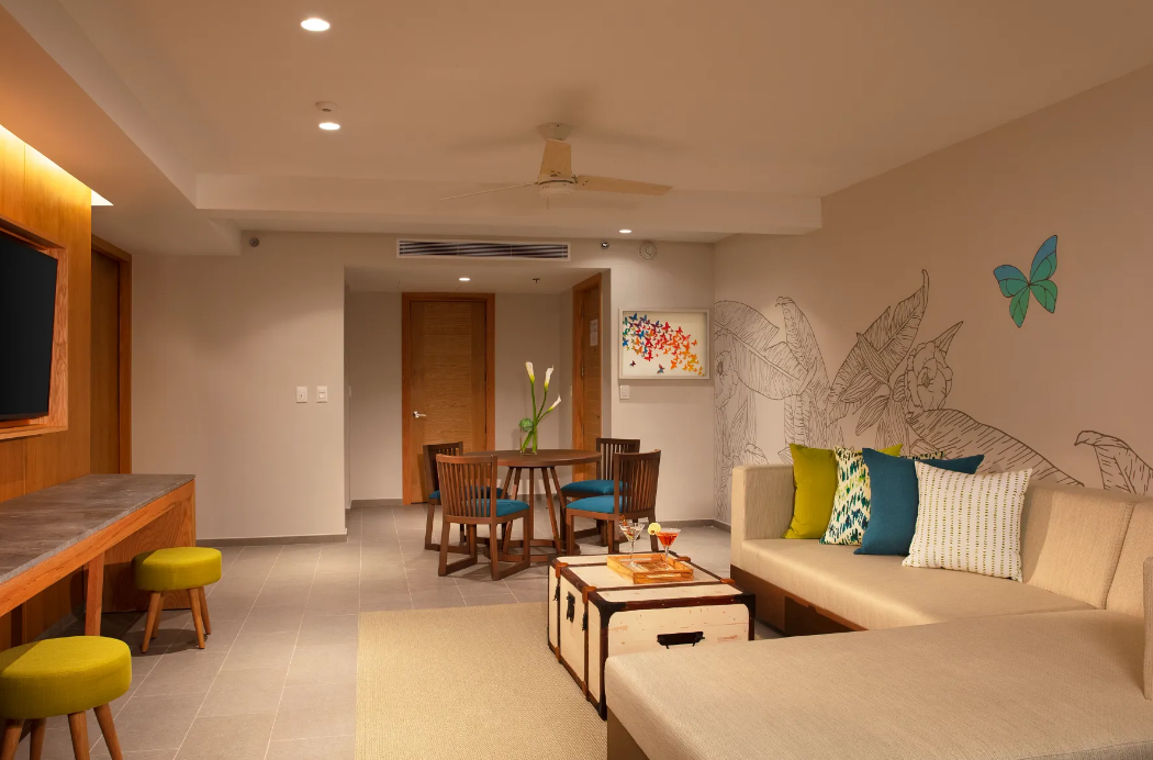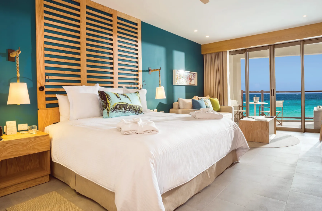 This spacious suite features a separate dining and living area with a large sofa, perfect for relaxing after a day in paradise. Enjoy a spacious bathroom designed for comfort, and step out onto your private furnished balcony with a hot tub and a beautiful ocean view, creating the perfect setting to unwind. As a Preferred Club guest, you’ll also enjoy exclusive amenities for an even more exceptional stay.