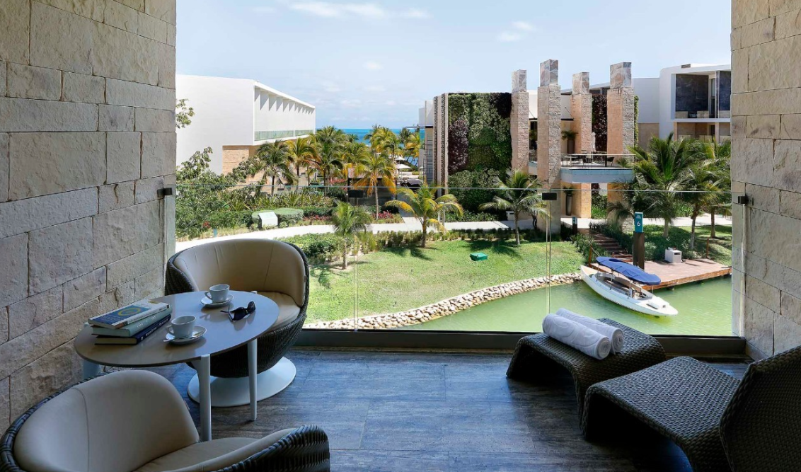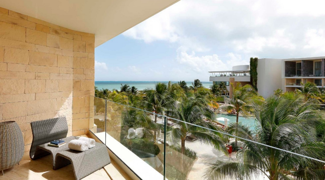 Spacious, modern room with incredible ocean views from the tranquil terrace. Unwind in the room’s elegant marble rainfall shower or the unique standalone hydromassage bath. Out on the furnished terrace, you can sit back, relax, and take in the incredible views of the Caribbean for a getaway you’ll never forget.
